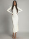 Basic ribbed mini dress with ruffled neckline, beige FG668